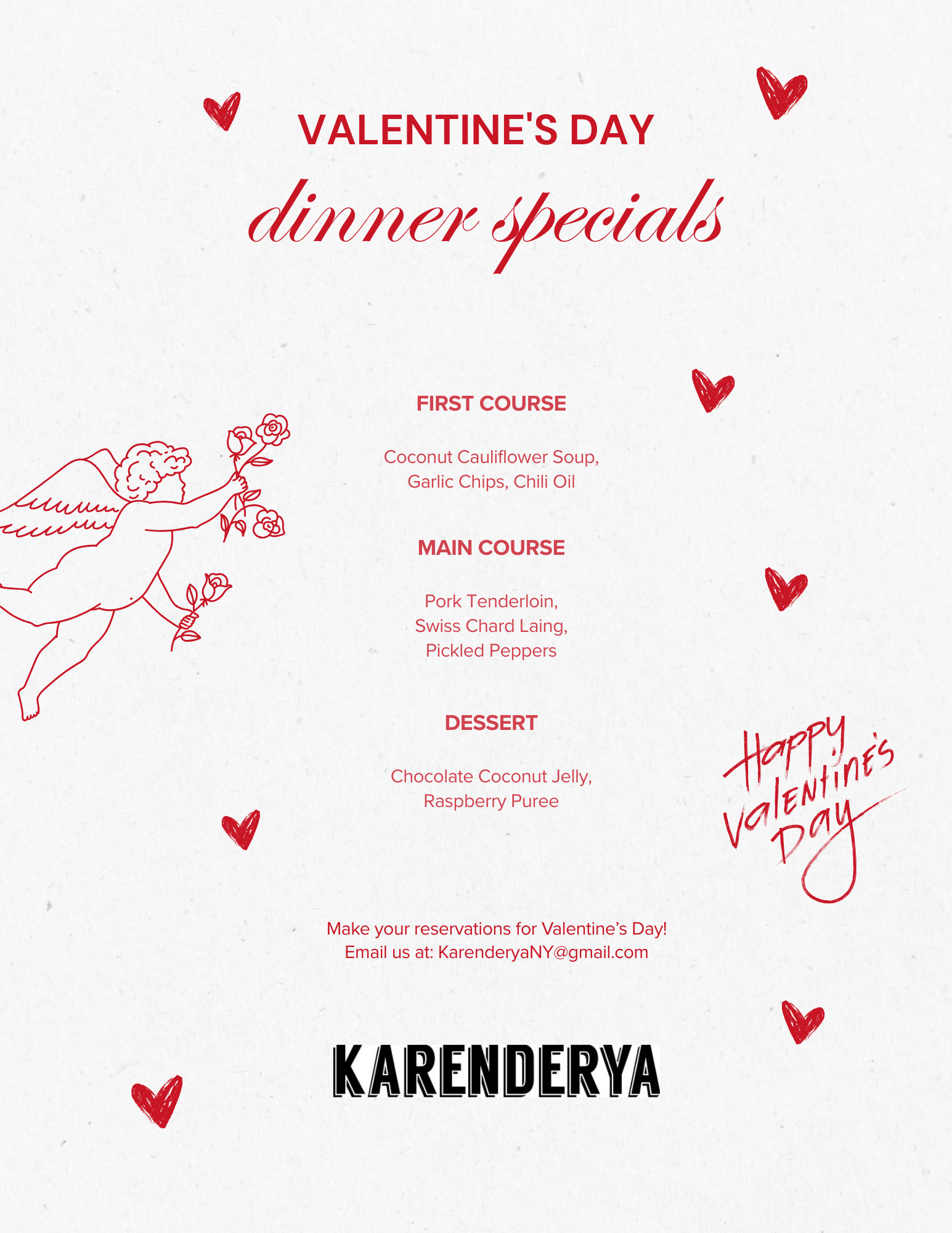 Looking to have a delicious dinner that won’t break the bank? Make your reservations with us for Valentine’s Day! Email us at KarenderyaNY@gmail.com to reserve your table.